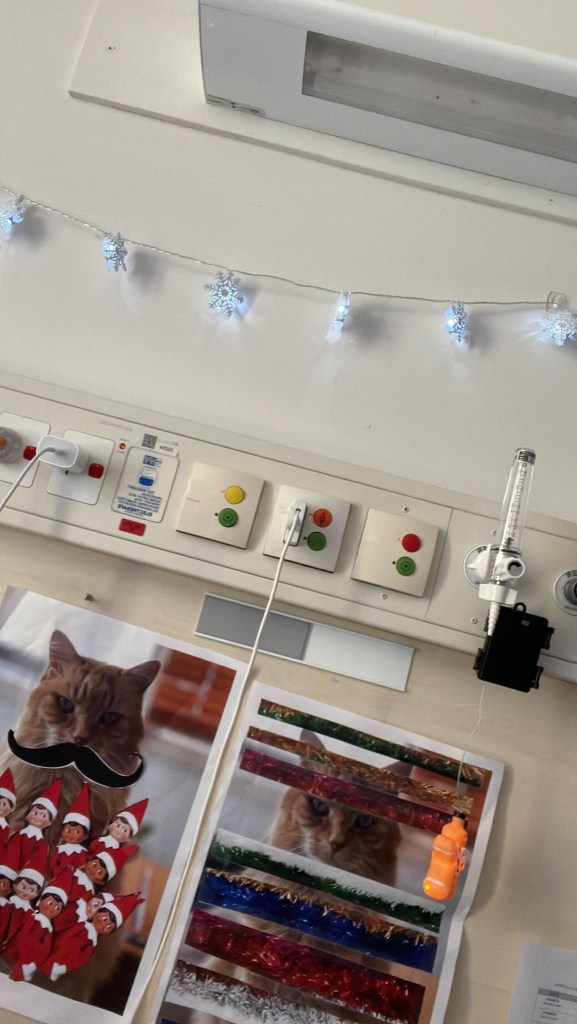 Bring other things to decorate and create a pleasant space. I was gifted and bought plants, flowers, pictures and Christmas decorations that helped to brighten up my bleak hospital room.